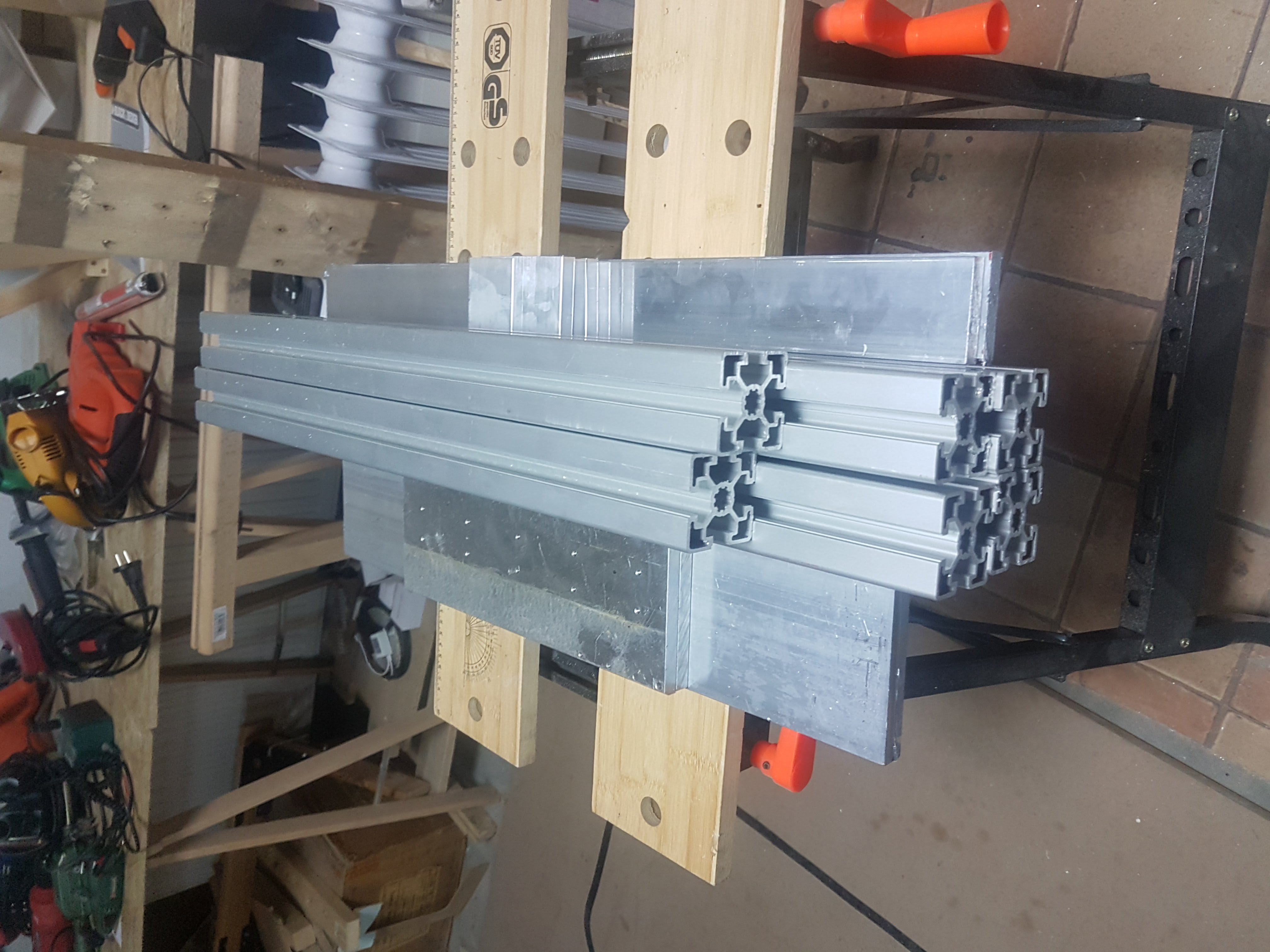 Cum spuneam si mai sus, cu putin noroc am reusit sa cumparam profil de Al 45x45 mm la un pret foarte bun, astfel incat am hotarat sa folosim cat mai mult din el pentru construirea “sasiului” cat si a “gantry-ului” astfel reducand nevoia de a mai cumpara materiale care de obicei vin in cantitati mult mai mari decat avem noi nevoie pentru acest proiect.